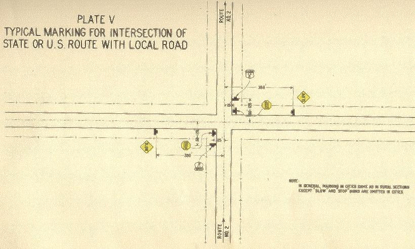 Plate V - Typical Marking for intersection of State or US Route with Local Road