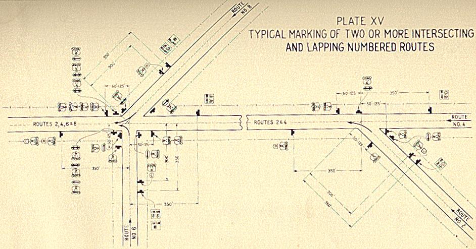Plate XV - Typical Marking of Two or More Intersecting and Lapping Numbered Routes
